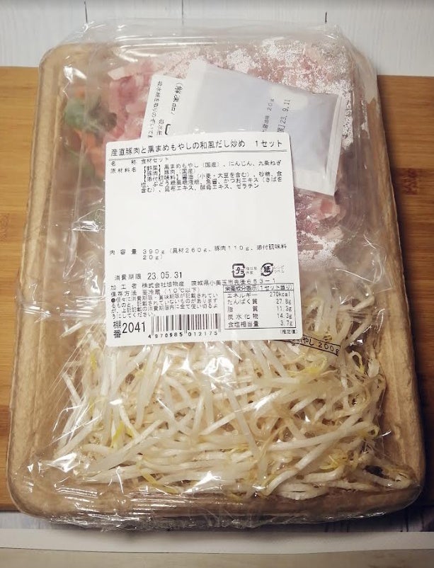 我が家でリピート率の高いミールキット 国産豚肉と黒豆もやしの和風だし炒め。